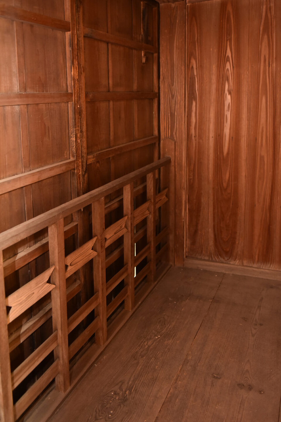 二階「中部屋」として利用。商家では女中や奉公人が多くが住み込みで働いていたため、彼らのための部屋が必要でした。女中部屋として商家の中央部分や奥まった場所に設けられることがありました。