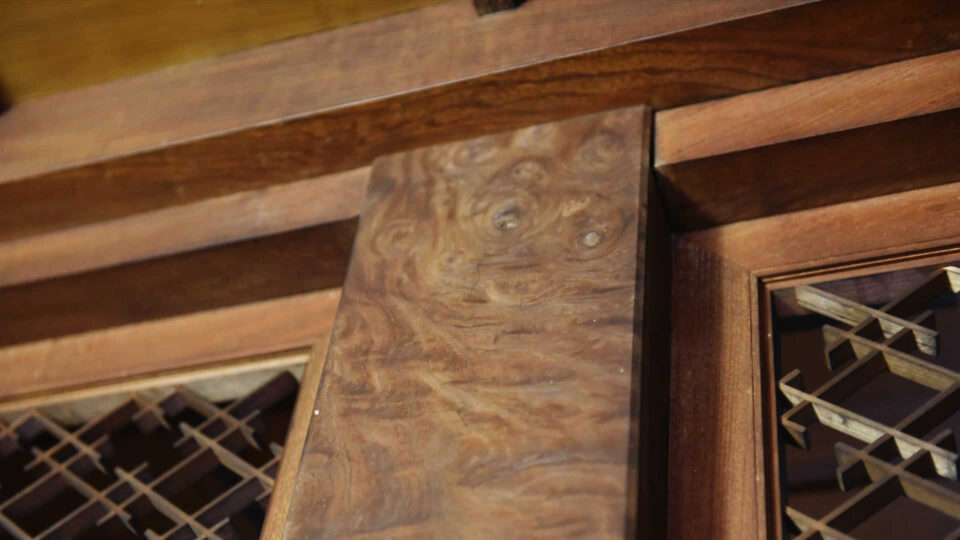 欅(ケヤキ、KEYAKI)はその耐久性と美しい木目・杢目から、古くから国内最高峰の木材として重宝され、銘木を代表する木の一つ。特に希少性が高く、独特な美しさと自然の迫力を感じることができる玉杢(たまもく)は、今でも驚くほどの高値で取引されています。